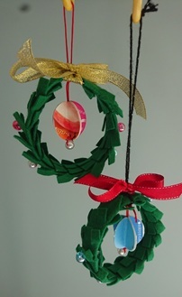 クルクルX'masリース作り (かわさきエコ暮らし未来館) 牛乳パックやフェルトを使ってリースを作ろう♪ 好きなパーツを選んで、手のひらサイズのオリジナルミニリースができるよ!
