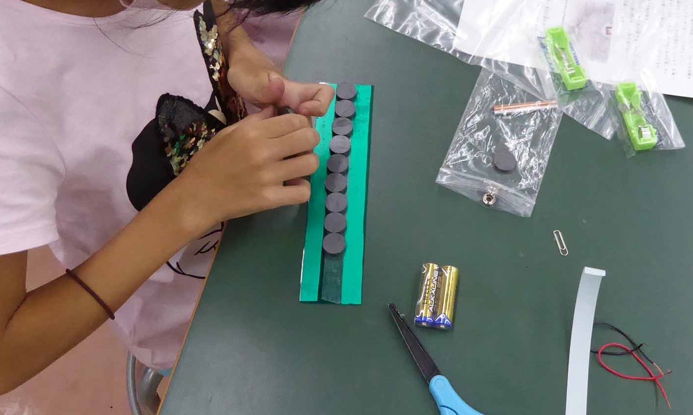 (省エネグループ) クリップと磁石と乾電池で簡単なモーターを作ります。 自分で作る楽しさと作ったモーターを回してモーターの原理も楽しく学べる企画です。