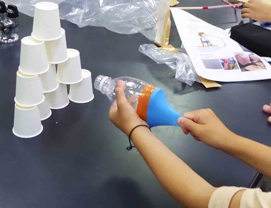 (川崎市地球温暖化防止活動推進センター) 空気は見えないけれど、力持ちなんです。 エアーバッグを作って重いものを持ち上げたり、空気砲を作ってコップがたおせるか実験してみましょう。